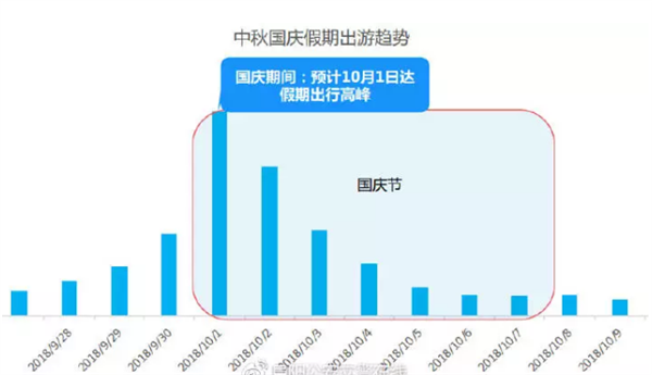 出行高峰出现在10月1日,如果还未制定出行计划的游客可以选择在国庆前,或者10月4日之后出行。