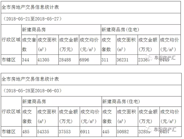 据阜阳市房地产管理局最新发布信息,公布了6月4日-6月10日(6月第二周),阜阳市房地产市场的交易状况,阜阳市辖区商品房销售共485套,销售总面积为54335㎡,销售均价为6911元/㎡,总销售金额约